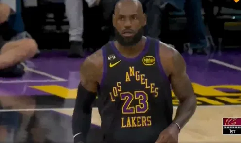 比赛第一节,詹姆斯开局追帽米切尔,随后中距离跳投命中湖人首分。